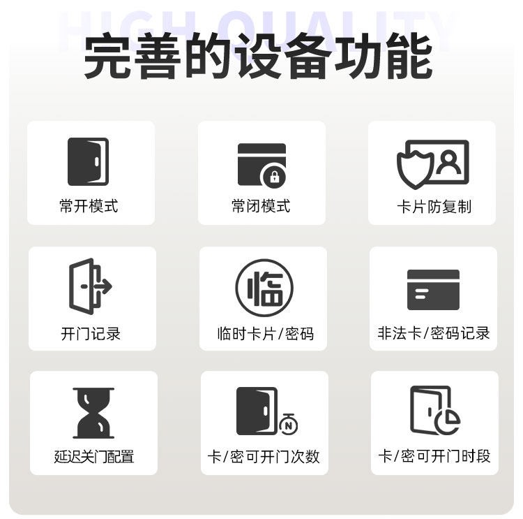 基隆这款智能门锁提供室内门锁和防盗门锁两种选择,其中室内门锁尺寸为 2806521mm,适配 5050 锁体;防盗门锁尺寸为 3657021mm,适配 6068 锁体,可满足不同场景的安装需求。它采用铝合金一体成型搭配钢化玻璃面板打造,兼具坚固耐用的品质与简洁美观的视觉效果。门锁支持蓝牙无线通讯,解锁方式丰富多样,密码、卡片、蓝牙、钥匙四种方式随心选择,满足不同使用习惯与应急需求。其工作温度范围为 - 20~70℃,能适应多数地区的气候条件,采用碱性电池供电,安装更换便捷,是兼具安全性与实用性的门锁选择。